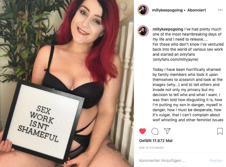 "Well, I’m here to tell you as my tears have dried and my mind is settled... sex work isn’t shameful. Sex work is work wether it’s a hobby, a full time job or a side hustle. People are fine with women’s bodies being sexualised for literally everything from porn to car commercials but heaven forbid a woman would capitalise on that, heaven forbid a woman would use what their told is their weakness as power. Sex work isn’t shameful and fuck anyone that makes you think that. "